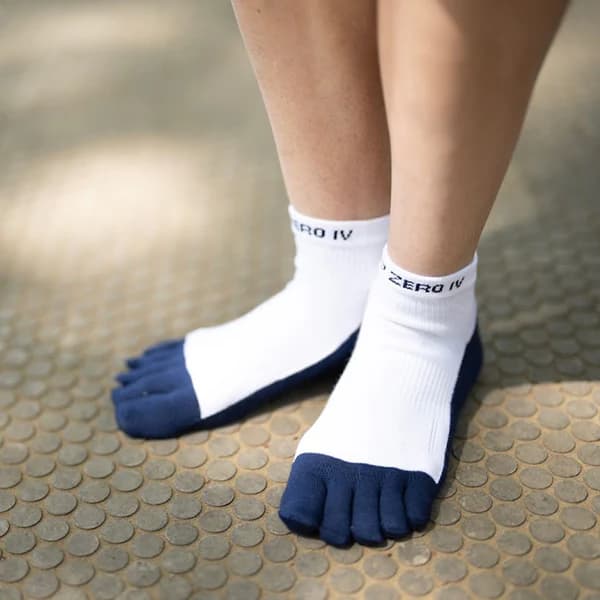 5本指ソックスだと指の部分にはグリップが付いていませんが、その他の吸着素材がガッチリ密着してくれるので、走っている時に指先がズレる不快感もありません。